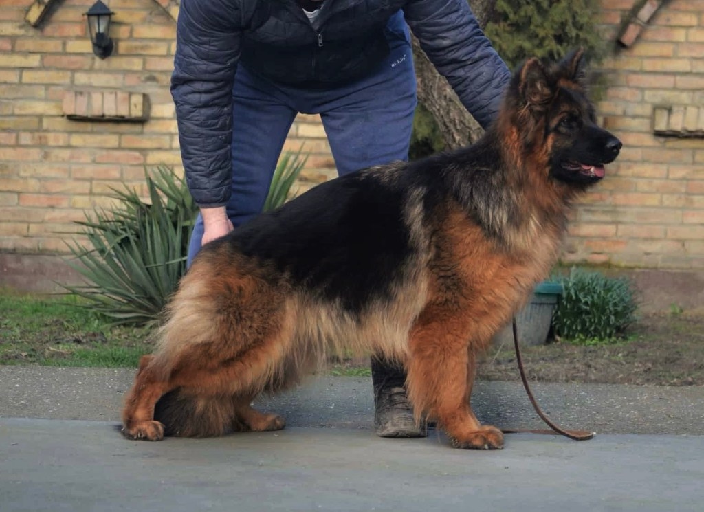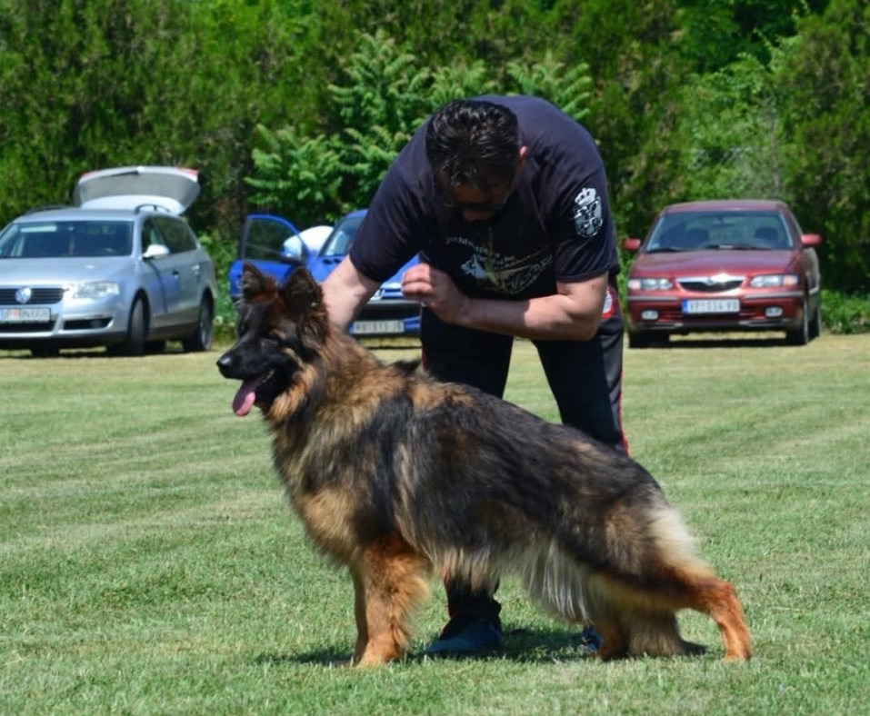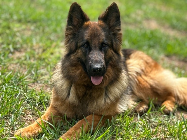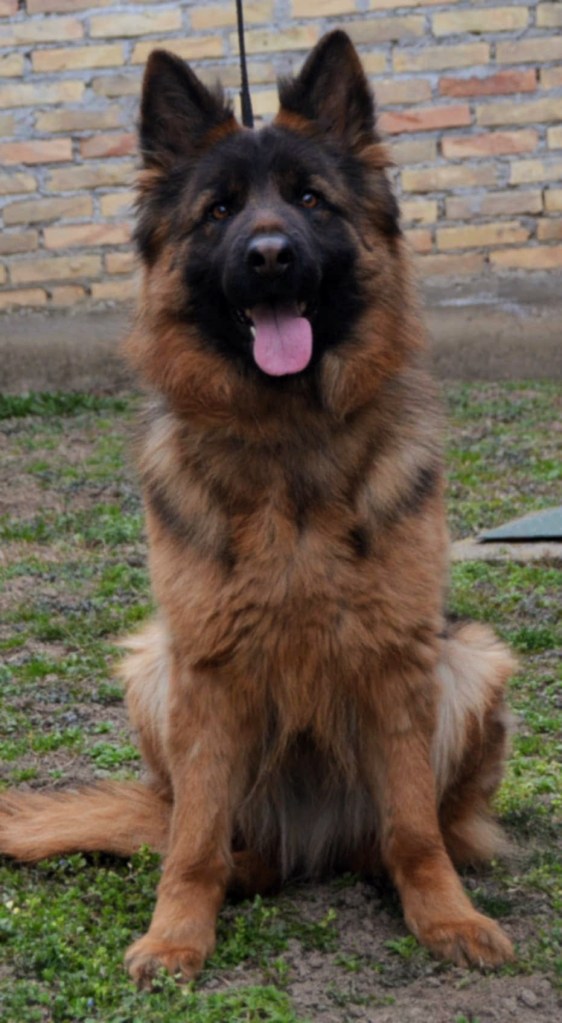 Rhode was imported from Serbia. This top 50% west German showline 50% Czech working line is bound to be amazing. She is a qvido granddaughter. She is a sable long coat. Rhode is high drive, and has trained in bitework. We love her puppies and she is just a fabulous dog.